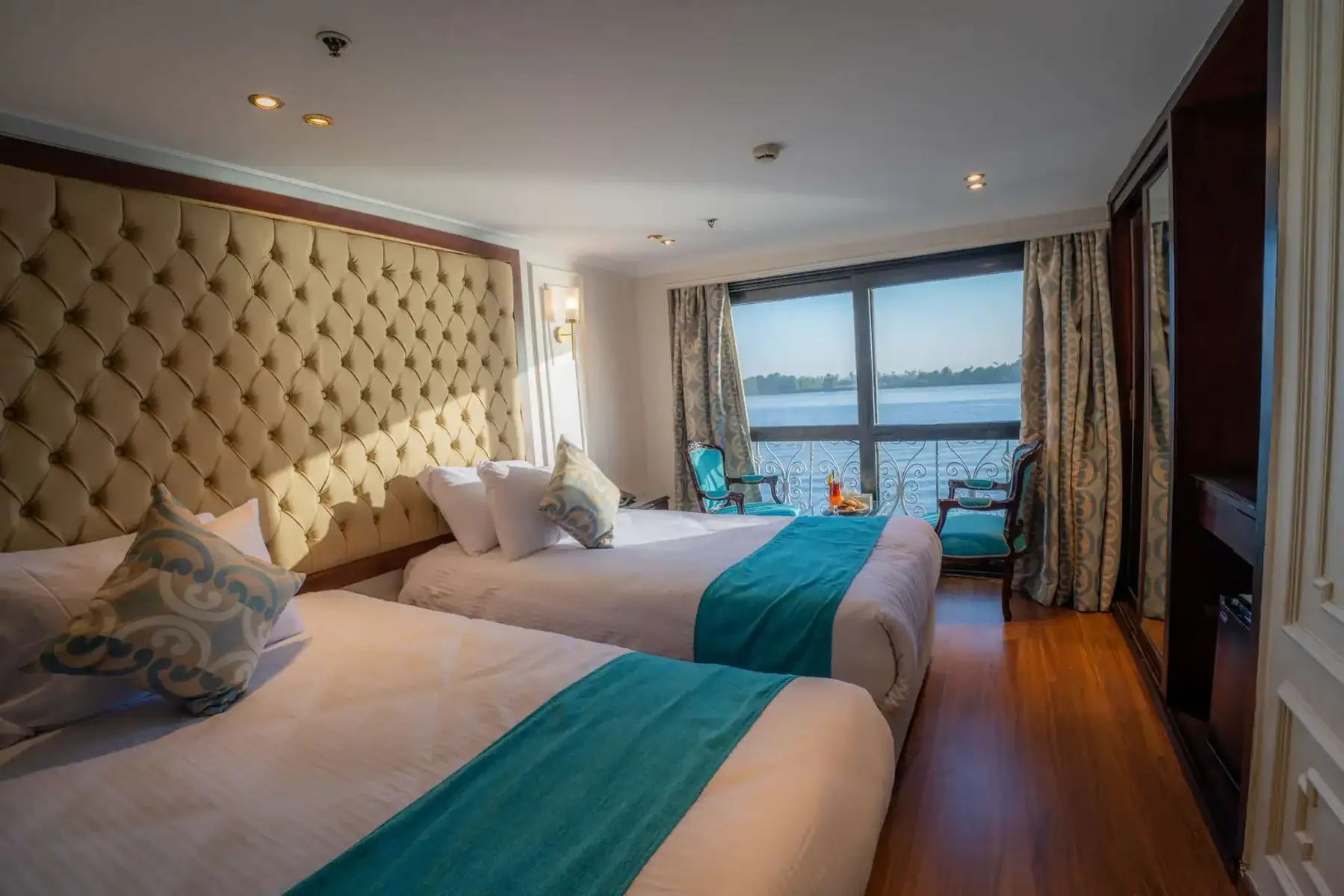 - L’hébergement en cabine double extérieure à bord d’un bateau 5* sur le Nil