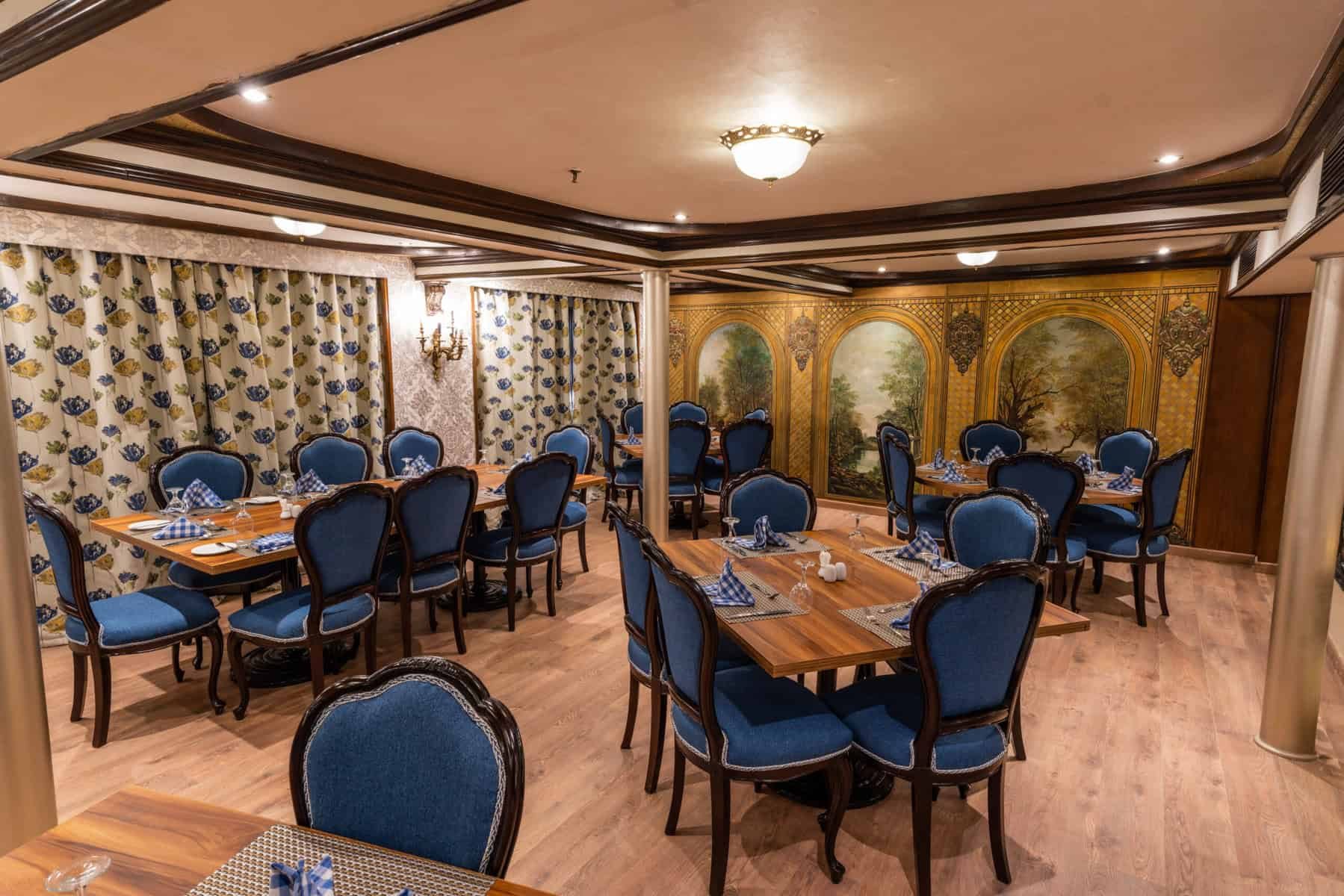 Pension complète sur le bateau : vos repas se composent de buffets de petit-déjeuner, déjeuner et dîner. L’heure du thé avec café et biscuits sur la terrasse supérieure du bateau l’après-midi pendant la navigation.