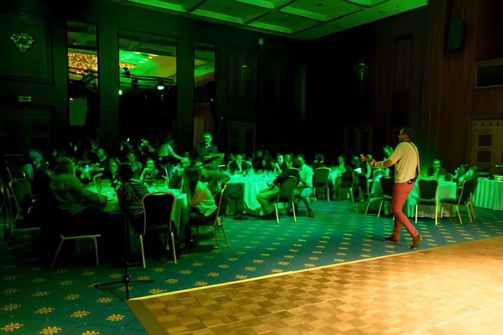 Débutez votre soirée par un cocktail apéritif au Champagne, accompagné d’amuse-bouche, puis continuez par un dîner, tout en profitant d’une animation unique pour votre groupe !